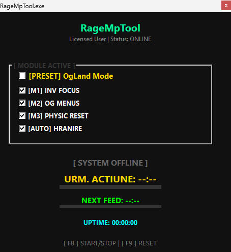 [M1] INV FOCUS: Navigare inteligentă în meniuri.[M2] OG MENUS: Simulare activitate constantă.[M3] PHYSIC RESET: Bypass Anti-AFK prin mișcare.[AUTO] FEEDING: Caracterul tău rămâne mereu Full.